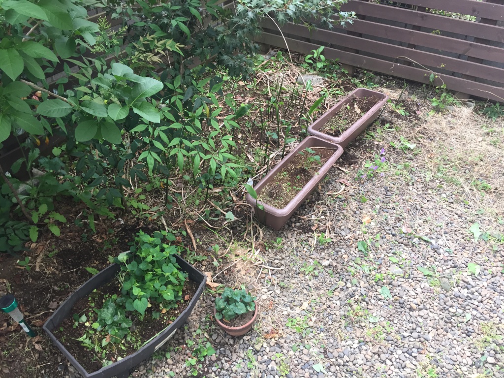 中庭 2018-04-25 最終更新日時 : 2018-04-25 松木千俊 昨日の朝、草ぼうぼうになっておりました中庭の草をざっとですが、ようやく撮りました。プランターの花も植え替えないといけないのですが、そこまでできなかったので、近日中に植えたいと思います。 ミョウガと長芋が芽を出しました。今年は収穫しようと思います。出来栄えはいかに。