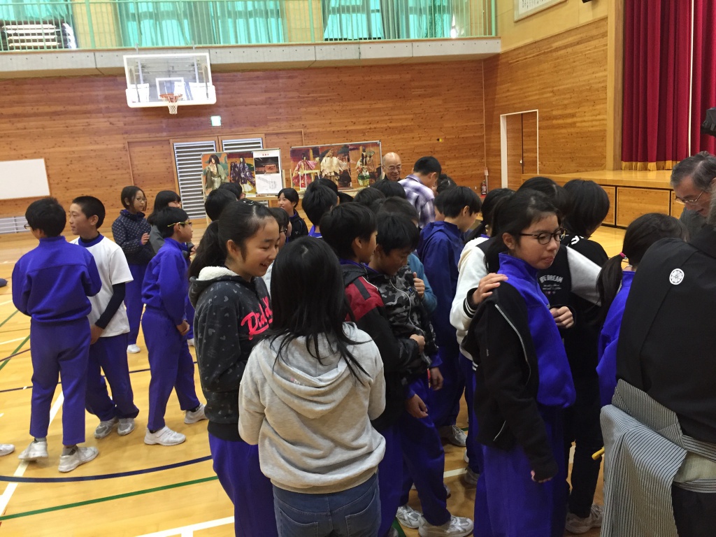 千曲市立東小学校 2018-11-12 最終更新日時 : 2024-06-20 松木千俊 昨日は長野の稽古で、今日は2校の能楽教室でした。 昨日新幹線から浅間山がとても綺麗でした。 また道路から見える紅葉の景色が素敵でした。 午前中千曲の東小学校に伺いました。 校舎が改装され、地元の松を使ったとても素晴らしい校舎でした。