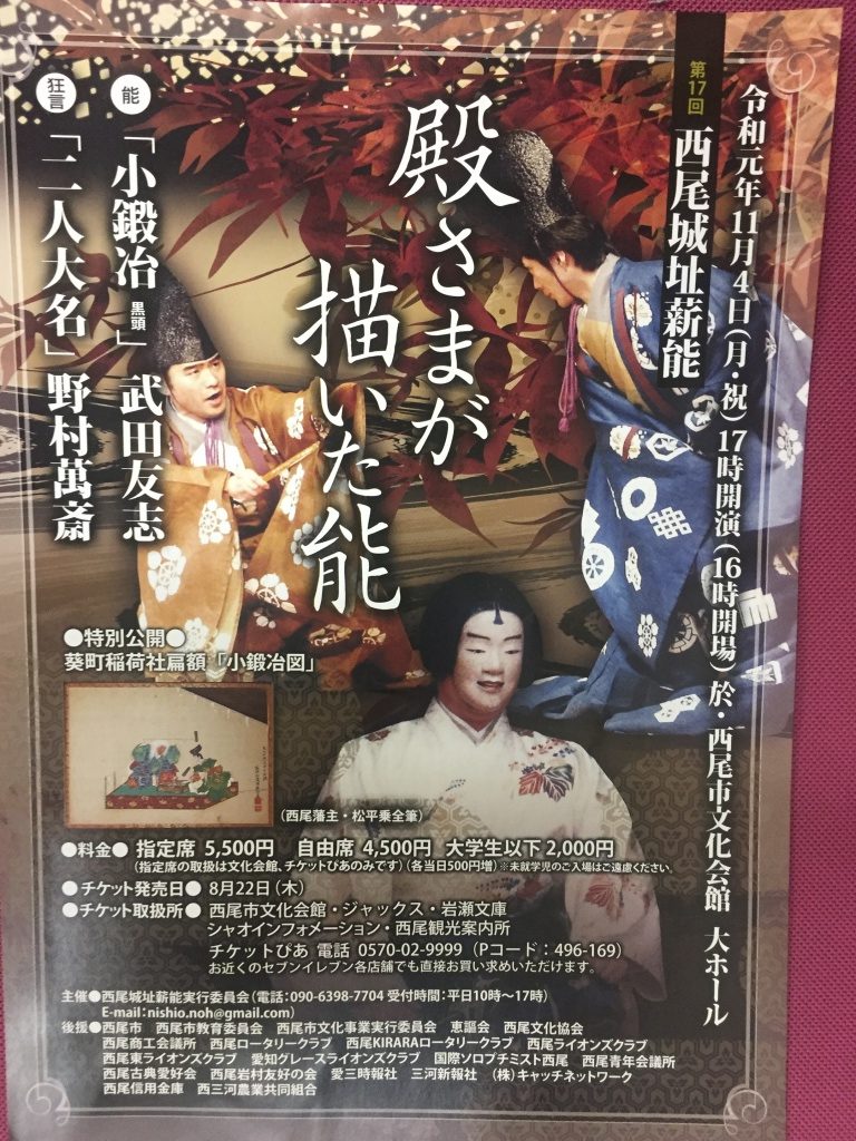 今日は愛知県西尾市の文化会館大ホールにおきまして、第17回西尾城址薪能に伺いました。西尾はお抹茶が特産です。