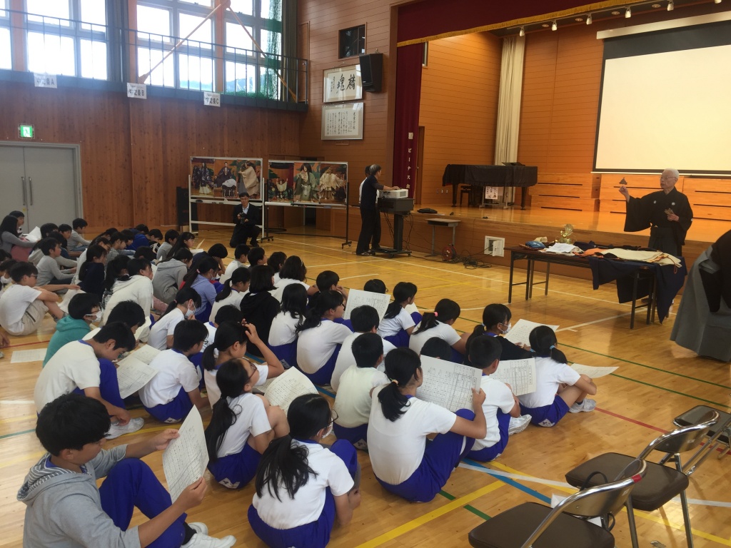 坂城の3小学校の能楽教室 2019-06-11 最終更新日時 : 2024-06-20 松木千俊 昨日は坂城の3小学校の能楽教室でした。 坂城小学校 、南条小学校、村上小学校の6年生が参加しました。特に南条小学校には山村町長様はじめ副町長様、教育長様がおいでくださいました。装束付けの時、町長様がモデルになってくださり、サプライズな演出になり、大変盛り上がりました。 三校の校長先生はじめ、関係者の皆様のご尽力に感謝申し上げております。