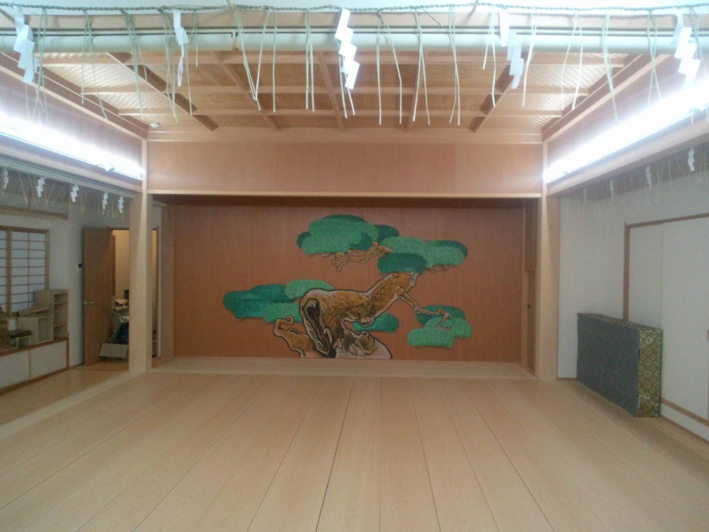 今日は朝から舞台の大掃除をしました。まずしめ縄を舞台にはり、窓ふきや拭き掃除をしました。