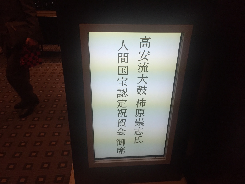 柿原先生受賞お祝いのパーティー 2018-10-16 最終更新日時 : 2018-10-16 松木千俊 今日は先日人間国宝になられました、大鼓の柿原崇志先生のお祝いのパーティーが、セルリアンタワーで盛大に行われました。 先生は舞台活動のほか、芸大で長年にわたりご指導され、私もお稽古をつけていただきました。 先生の芸風は誰にも真似のできない、まさに名人芸だと思います。 お身体に気をつけられて、お舞台のお姿をもっともっと拝見したいと思います。おめでとうございました。