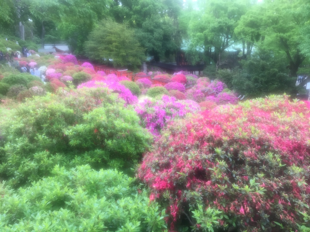 根津神社のつつじ祭り 2019-05-11 最終更新日時 : 2019-05-11 松木千俊 ゴールデンウィークは、1日のタケノコ掘り以外はお稽古と会ですみました。 今月25日の東京観世会で鉄輪を勤めます。また6月1日が松謳会がございますので、その準備におわれております。 5月もあっという間に半分過ぎます。 先日千駄木のお稽古の後、近くの根津神社に行き、つつじを見てまいりました。 もう少し散り始めておりましたが、美しい風景に心がなごみました。日本はすばらしいですね。