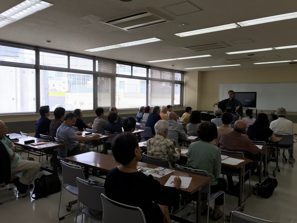 船橋ワンコイン講座 2019-10-08 最終更新日時 : 2019-10-08 松木千俊 また台風が発生しました。週末に長野、佐渡の予定ですが、天気が心配です。 今日は船橋のワンコイン講座でした。 テーマは能楽師はなぜ老女物を目指すのかでした。 自分の経験をふまえてのお話をさせていただきました。