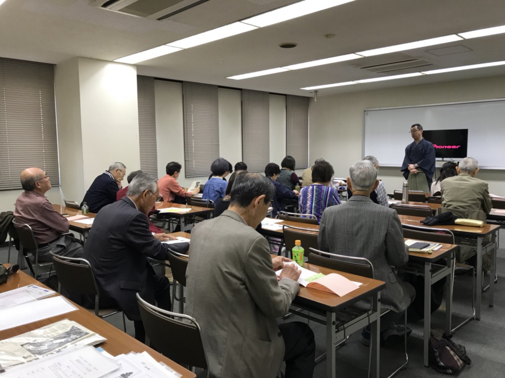 船橋ワンコイン講座 2018-04-11 最終更新日時 : 2018-04-11 松木千俊 昨日は船橋のワンコイン講座でした。 テーマは羽衣についてでした。 5月25日に深大寺薪能で勤めます。また6月9日の松謳会でも羽衣の能が出ますので、このテーマにさせていただきました。 羽衣という曲を私はとても重要な曲だと思っております。 30周年の節目の年に勤められること身が引き締まるおもいです。