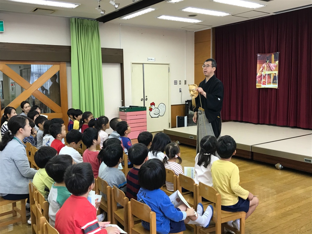 荒川区立尾久第二幼稚園 2019-10-28 最終更新日時 : 2019-10-28 松木千俊 今日は幼稚園に参りました。 去年は別のところに伺わせていただきましたが、その時の先生が移られて今回開催となりました。 私がお伺いしているのは小学校が中心ですが、幼稚園児もなかなか面白いですね。楽しかったです。 彼らの興味をどう引くか、その時の具合でいろいろ考えないといけません。 今日は年少、年中と年長と2組に分けて行いました。 私の必死な姿をご覧ください。