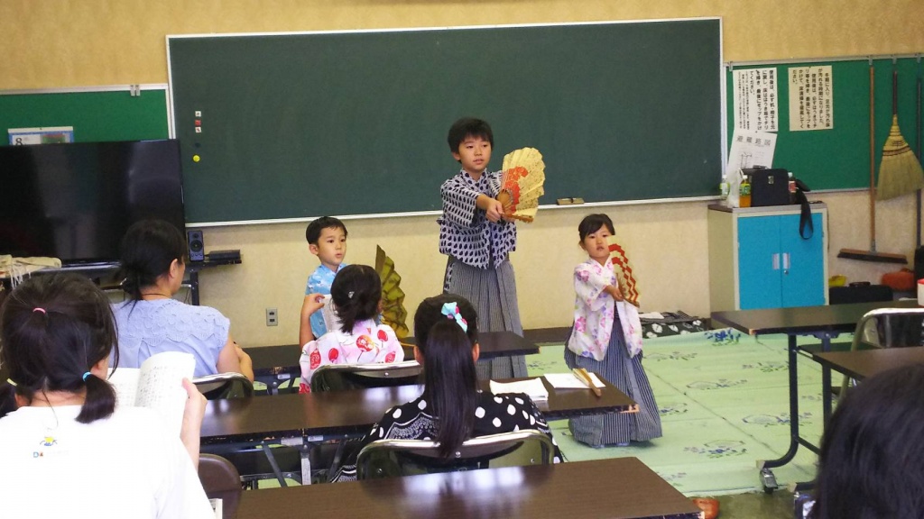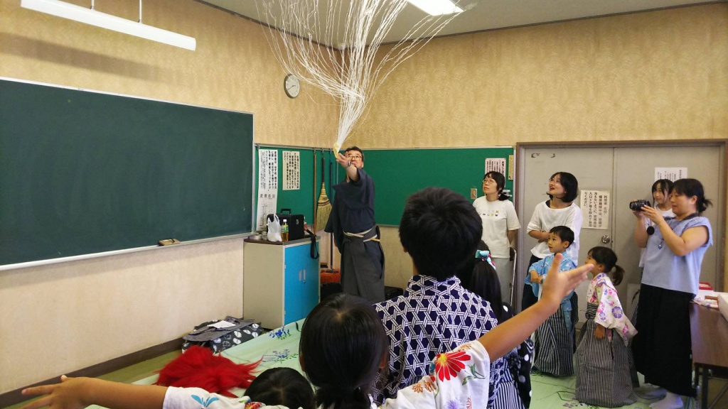 諏訪の親子教室 2019-08-31 最終更新日時 : 2024-06-20 松木千俊 午後は親子教室でした。 こちらも文化祭、手長神社の発表会に向かってのお稽古でした。 お稽古の後は土蜘蛛の装束付けをいたしました。 子供達はとても興味を持って話を聞いてくれました。