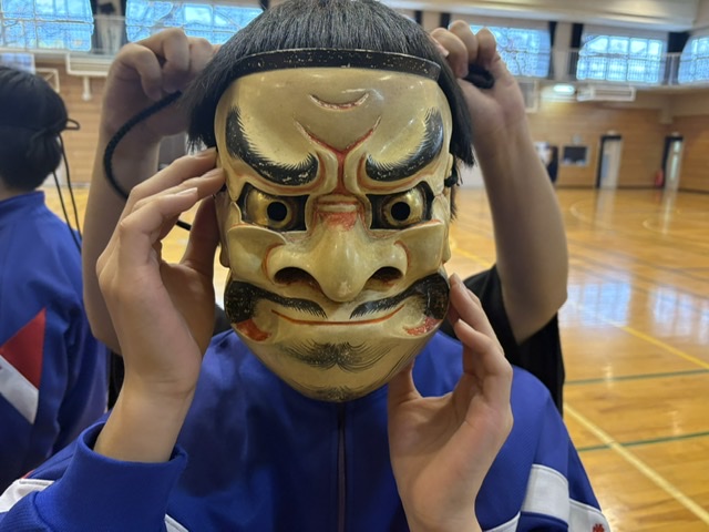 今日は練馬区立豊渓中学校にて能楽教室をさせて頂きました。60人の三年生が参加してくださいました。