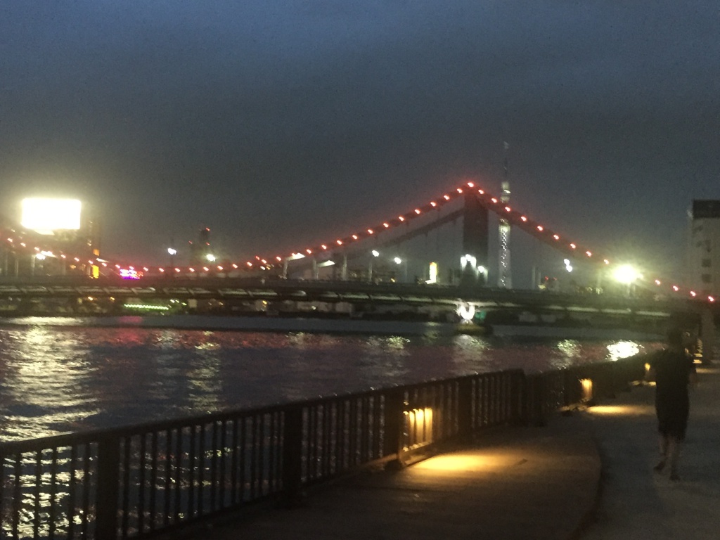 隅田川 2018-06-02 最終更新日時 : 2018-06-02 松木千俊 昨日9月に予定されております、ワークショップの話の相談で隅田川添いの建物に伺いました。 そのあと隅田川を歩きました。橋を眺めながら川沿いを歩きましたが、 暑くもなく寒くもなく、とても素晴らしい気候に感動しました。 その後、関係者の方に貴闘力のお店に連れて行っていただきました。 焼き肉の有名お店でとてもおいしかったです。ご本人ともお話しでき、ご子息の話もさせていただきました。