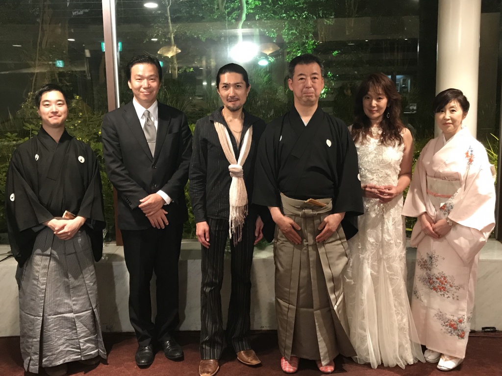 トランペットとエレクトーンとのコラボレーション 2018-06-30 最終更新日時 : 2024-03-27 松木千俊 今日は広尾のフレンチ、シェ モルチェでトランペット奏者の牧原正洋さんとエレクトーン奏者の本間樺代子さんとのコンサートに出演させて頂きました。 月をテーマにお二人の演奏で羽衣の型を紋付袴で舞い、そのあと装束を着て、崇俊の地謡で羽衣の後半を舞いました。 昨年試演をいたしましたが、初めての試みでしたので、不安がございましたが、終了後多くの方からとてもよかったと言って頂きました。 素敵なお二人とのコラボはとても貴重な体験でした。感謝申し上げます。